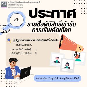 ประกาศรายชื่อผู้มีสิทธิ์เข้ารับการสอบคัดเลือก ตำแหน่งผู้ปฏิบัติงานบริหาร อัตราเลขที่ 5412